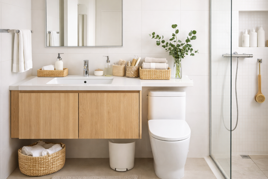 욕실 수납은 ‘보기 좋게’보다 ‘사용 동선에 맞게’ 구성하는 것이 중요합니다. 특히 바쁜 아침 시간, 물건을 찾느라 헤매지 않도록 손이 가장 자주 가는 위치에 필수 아이템을 배치하세요.